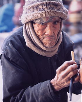 真剣な眼で、顔を剃っていました。その眼をカメラに向けて……