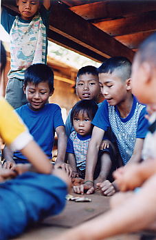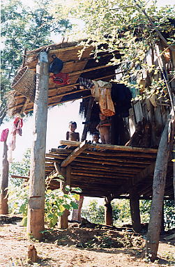 チェンマイ山岳地帯の民家。子供たちがおそるおそる出てきました。
