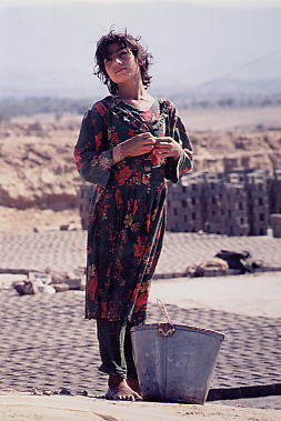 ■アフガン女性団体と接触 アフガニスタンでは、二〇年以上内戦が続いてる。また、イスラム原理主義の武装勢力タリバンは、女性の就労や教育を禁止するといったさまざまな禁制を実施していることで知られる。その結果、おびただしい数の難民が流出し、隣国パキスタンにはすでに二〇〇万人ものアフガン難民が暮らしているといわれている。 わたしは、三年ほど前にインターネット上で、アフガン女性の団体RAWA(The Revolutionary Association of the Women of Afghanistan )のホームページを見て、アフガニスタンの問題に関心を持つようになった。そして、一九九九年の四月に、初めてパキスタンの難民キャンプを訪ねた。 当時、難民の多くは、大変貧しく、慢性的な栄養失調で、病気になっても医師に診せることもできない状態だった。国連の食糧援助が打ち切られていたので、人々は自分で働いて明日のパンを手に入れなければならなかった。しかしアフガン難民の仕事は非常に限られており、過酷で低賃金の煉瓦工場や工事現場で働くしかない。それでも仕事があればまだいいほうで、物乞いになることを余儀なくされる難民も多い。ペシャワール市内のあちこちで、難民の女性や子どもたちが物乞いしていた。 こうした難民の窮状を実際に見て衝撃を受け、なんらかの支援をしたいと思った。と同時にアフガン人の魅力をフィルムに刻み込みたいと思った。 ■国境からタリバン支配下の首都カブールへ 二〇〇〇年四月、友人のアフガン人男女二人とともにパキスタンから陸路でアフガニスタンに潜入した。国境の地トルハムを出発した車は、首都カブールに向けてひた走った。車窓には渇いた茶褐色の大地が広がる。やがて、荒涼とした大地を彩るような赤い花畑が見えてくる。麻薬ヘロインの原料となるケシの花である。アフガニスタンは世界最大のケシ畑を持つ国だ。ヘロインの取引による莫大な利益は、タリバンなどの武装勢力の軍資金になっているといわれている。その一方で、ケシの栽培は、荒廃したアフガニスタンの大地で暮らす貧しい人々にとって、大切な収入源でもあるのだ。主要幹線沿いに堂々と広がるケシ畑を眺めながら、複雑な思いにとらわれた。 カブールの街は、パキスタンの難民キャンプによく似ていた。泥造りの家屋に高い塀。各家から道路に流れ出ている生活排水。わたしが滞在した家は二階建てで、中庭があり、トイレとバスルームが別棟になっていた。トイレは地面に穴を掘ってその上に板がのせてある。いっぱいになったら、別の場所に穴を掘るのだろう。生活に必要な水はタンクの中に汲み置かれている。こうした様子は難民キャンプの家とそっくりだ。本当は、難民キャンプがカブールに似ているというべきだろう。難民となったアフガン人たちは、パキスタンに自分たちの生活形態を持ち込み、アフガニスタンに似せた難民キャンプを作ったのだ。 さて、カブールには水道がないので、各自で水を都合しなければならない。しかし、そのまま飲めるようなきれいな水はない。だから水を沸かすための燃料は必需品。また夜八時すぎになると電気がつくが、電圧が弱いためか、薄暗い。九時すぎても電気が来ないときがあり、そういうときはランプを使う。ランプのための油も貴重だ。電話はときどきつながるが、通信手段としてあてにできるほどではないそうだ。 滞在期間中、アフガン女性と同じようにブルカを着てカブールの街を歩き回った。ブルカとは、頭の先からつま先まで布ですっぽりと覆い、目の部分だけが網の目になっている服で、タリバン支配下では十二歳以上の女性全員が着用しなければならない。 バザール(市場)では、野菜や肉などの食料品、衣料品やシャンプー、石鹸、アクセサリ、子どものおもちゃ、たばこ、その他の日曜雑貨品が売られていた。にぎやかで活気があるように見えた。しかし、商品はすべて外国から仕入れたものだ。 アフガニスタンには暮らしに必要なものを生産する工場がない。商人がパキスタンなどに行って買い付け、それをカブールで売っているのだ。産業のないこの国では、人々が生計を立てる手段が非常に限られているが、そのひとつが店で物を売ることだ。 カブールには女性の物乞いが大勢いた。子どもといっしょに道路の脇に座ったり、歩き回ったりして物乞いしている。ブルカを着ていると目と表情で訴えることができないからか、大声で「お金をください」「パンをください」と叫んでいた。 タリバンは、女性は男性に養われるものと規定して、女性が家の外で働くことを禁止している。その一方でタリバンは、民族の違い、イスラムの宗派の違い、あるいは反対派の支配地域に住んでいたという理由だけで、女性を養う役割を担っているはずの男性を殺してしまう。生活費を稼いでくれる男性(夫や父親、兄弟)がいない女性の多くは、物乞いをするしかなくなってしまうのだ。 夫を亡くした「寡婦」の中には、昼間は物乞いし