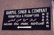 複合民族国家のマレーシア。クアラルンプールのある会社の看板には、英語、マレー語、アラビア語、タミール語、中国語と、マレーシアのすべての民族言語が記されていた