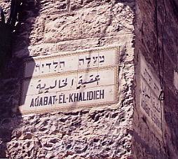 イスラエルの東エレサレムには、ユダヤ人、パレスチナ人が入り交じって住んでいる。路地の壁にはヘブライ文字、アラビア文字、アルファベットの三種類の文字が記されていた
