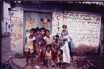 イスラム教徒とヒンズー教徒が平和共存する街カルカッタは、インド最大規模の商業都市の一つ。裏路地には、珍しく英語に交じってアラビア文字も書かれていた
