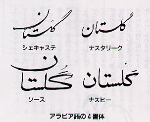 なにしろペルシャ語の書き文字はアラビア文字。三世紀頃にアラビア半島で祖型ができ、七世紀以降イスラム教と共に広まった文字だ。現在アラビア語の他、いくつか文字を作り足してペルシャ語、ウルドゥ語にアフガン語の表記に使われている。ペルシャ語の場合はアラビア文字二八字に四字加えて三二文字だ。数はたいしたことないけれど、同じとしか思えない子音字がいくつもあるわ、どれも書きにくいわ、極めつけに文字と文字をつなげて書くために語頭、語中、語尾、独立と、一文字が四種も変形する。