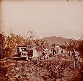 チュンポン市内から河口までの当時の道路の状況。象の力を借りなければならなかった