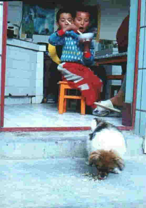 ある家庭の食事には愛犬も一緒でした。